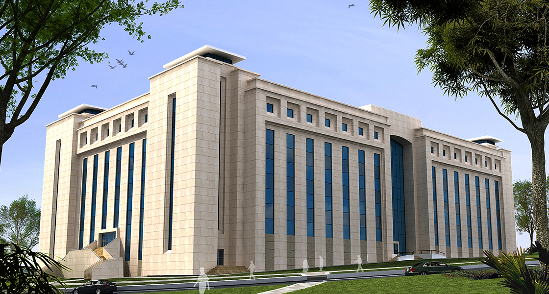 It is divided into two separate structures, each served by its own facilities. Common facilities, such as prayer rooms and training rooms, are housed in the basement. All building elevations are clad with natural stone integrated with structural glazed curtain walls.