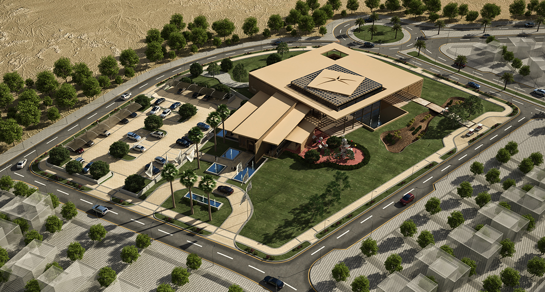 On a plot area of 12,000 m2 and with a built-up area of 1,500 m2 , the building is designed to be cost-effective, creative, unique, and appropriate to Makkah’s culture and climate. It consists of the following: