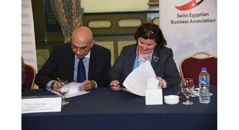 The roundtable discussion was held at the Cairo Marriott Hotel, and was attended by H.E. the Ambassador of Singapore, Mr. Premjith Sadasivan, the President of the Arab Academy for Science, Technology and Maritime Transport Prof. Ismail Abdel Ghafar, Governor of Rotary District 2451/Egypt Mr. Abdel-Hamid El-Awa, as well as the Chairman of Swiss Chamber of Commerce, representatives of the Community College Initiative, and delegates from nine businessmen associations.