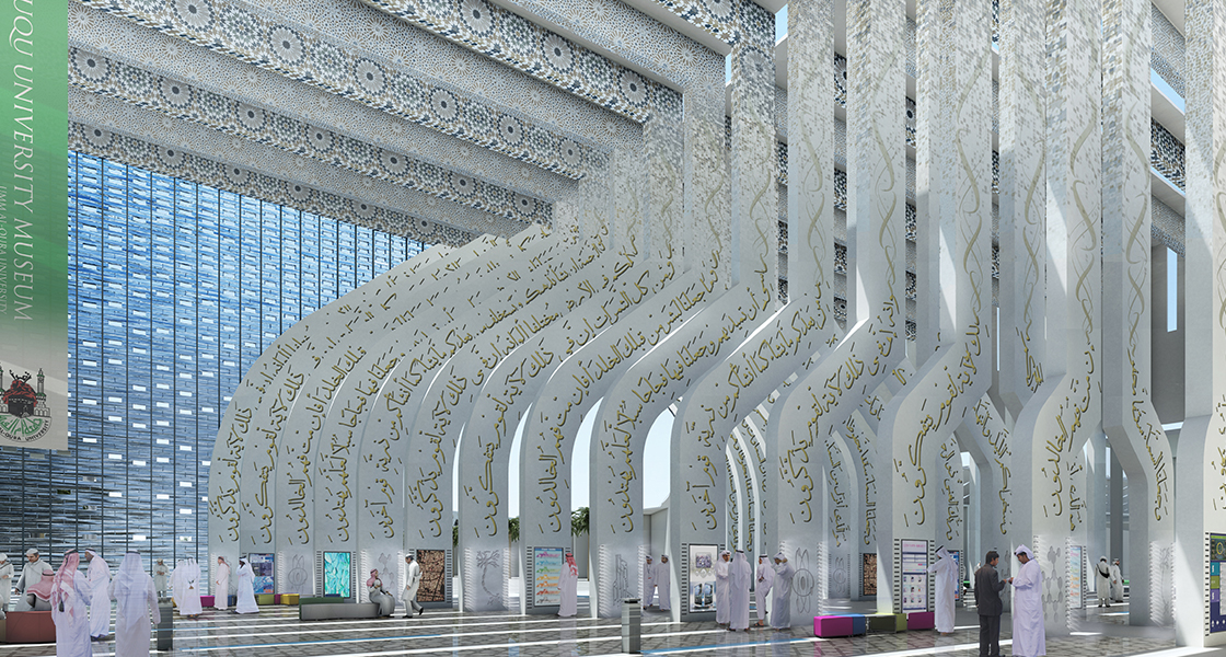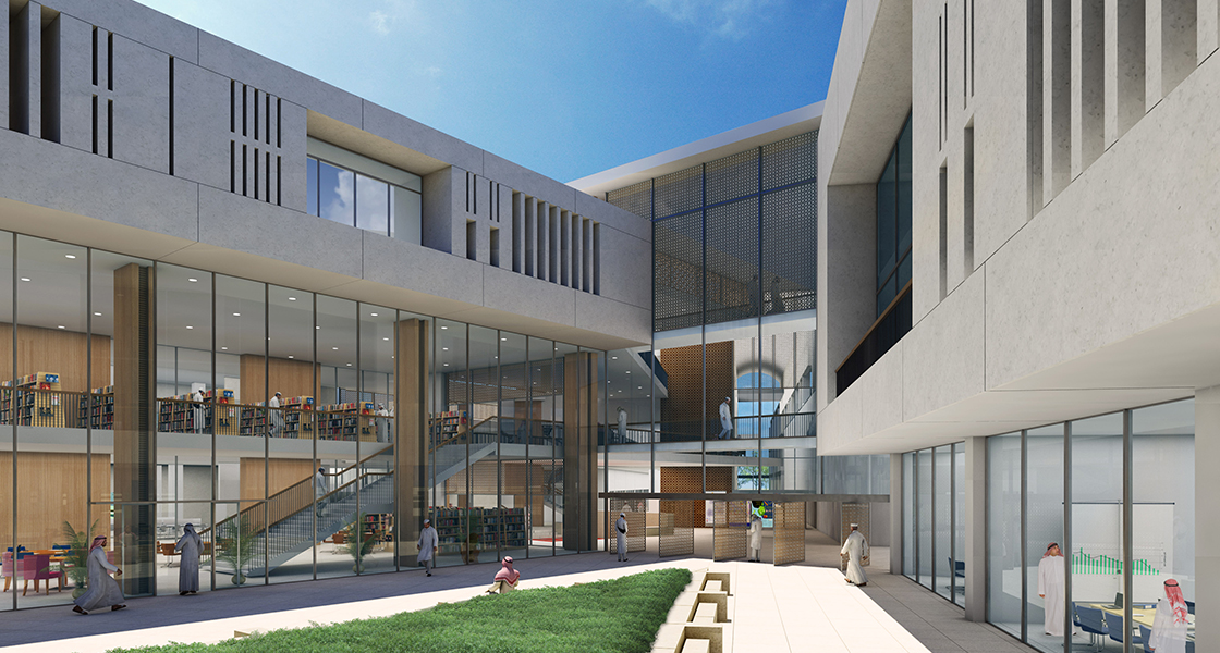 - New academic buildings (built-up area of 155,000 m2): Business Administration College, Community College, Islamic Economics College, Services & Continuing Education College, Judicial Studies College, and Islamic Architecture Department, in addition to academic spine buildings.