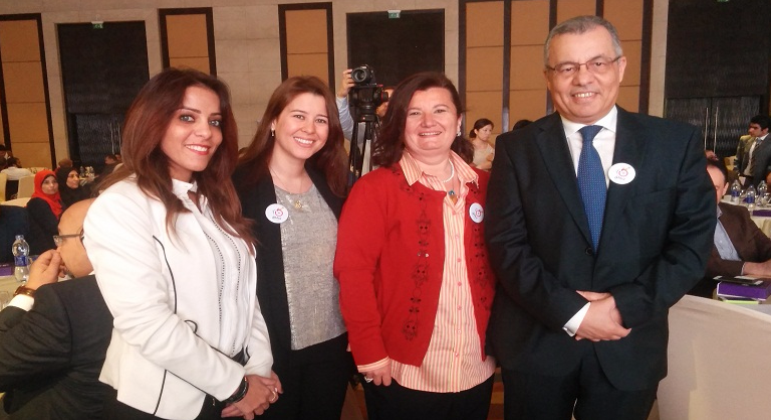 On 28 March 2016, ECG Vice President & “University to Work” Project Manager Dr. Nevine AbdelKhalek attended a ceremony marking the launch of Project “Entaleq,” the first mobile application and website enabling individuals with special needs to navigate accessible places in Cairo. The project is developed by the non-profit Helm in partnership with Vodafone Egypt Foundation. The launching ceremony was attended by Minister of Communications & Information Technology Yasser Al-Kady and Minister of Social Solidarity Dr. Ghada Wali.