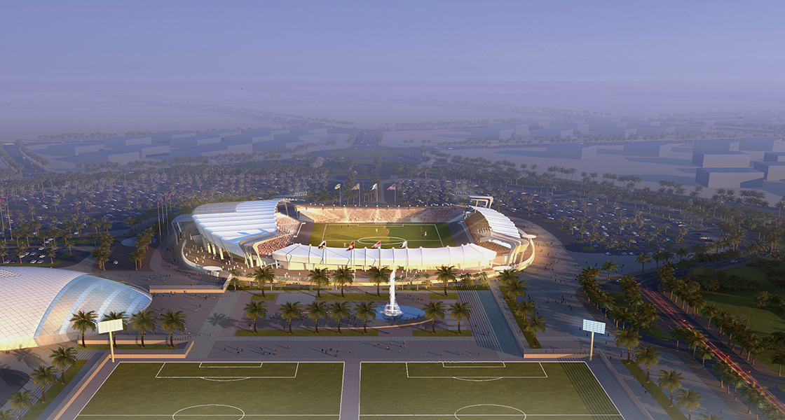The overall project included two phases, phase (1) comprised a soccer stadium, with a built-up area of 6,863 m2 and concourse area of 720 m2, four training soccer fields and the related facilities. Phase (2) comprised a fitness center, a mosque, utility buildings, changing rooms, substations and a sewage treatment plant.