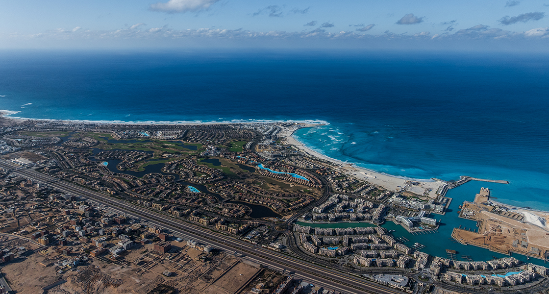 The mega-project Marassi located in the North Coast of Egypt. Overlooking the glorious view of Sidi AbdelRahman Bay, Marassi is a 6 km waterfront community that unfolds a year-round upscale residential, tourism, leisure, and commercial lifestyle development lining the Mediterranean Sea coast. Spread over a land area of 6.25 million m2, the project features seven waterfront residential districts inspired by various architectural styles including that of Andalusian, Santa Barbara, Tuscan, Formal Italian, and Spanish Colonial.