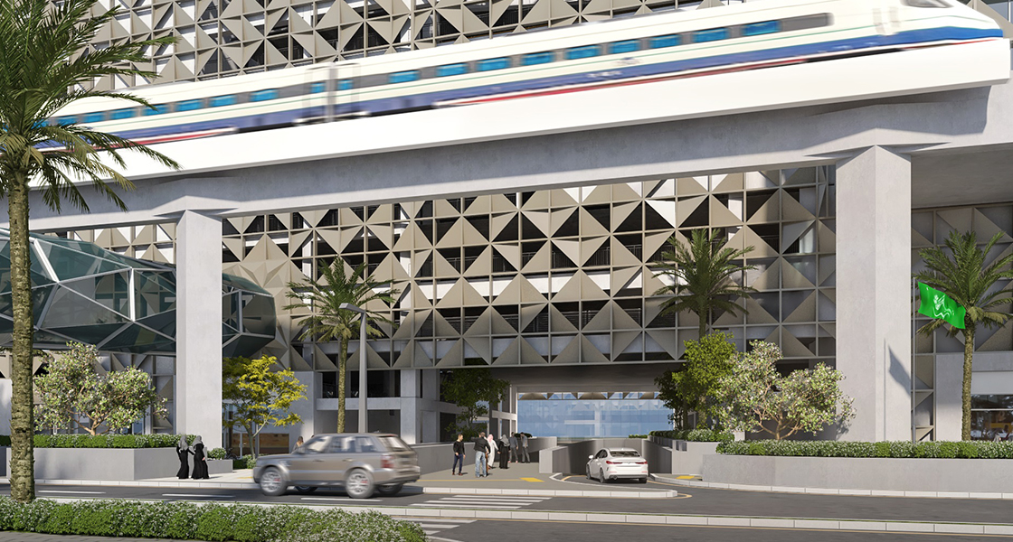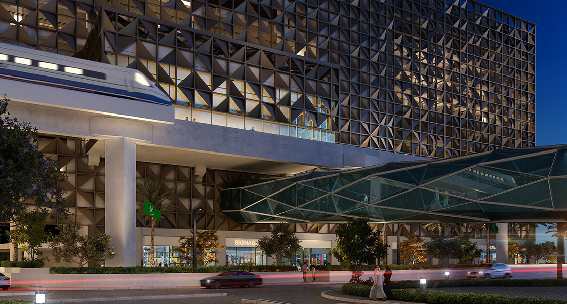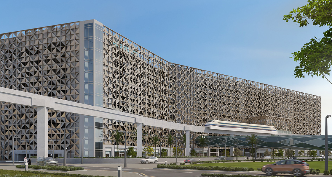 Located in King Abdullah Financial District “KAFD” on parcels 1.06 & 1.07; the 2,200-slot multi-storey car parking consists of ground, first, second, third, fourth, 5 typical, and 10th floors, in addition to a roof hosting an amenity area, with a total BUA of 106,821 m2.