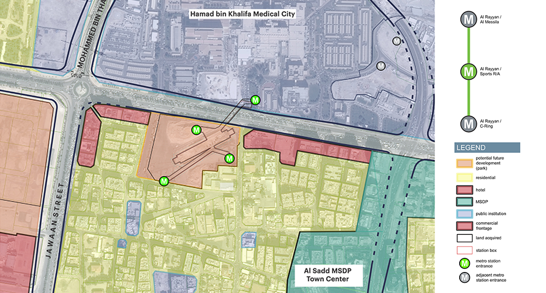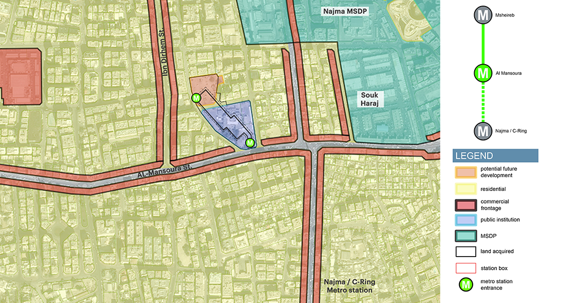 The Urban Integration Plans (UIP) and Station Area Planning (SAP) of this project are prepared by Qatar Railways Company (Qatar Rail) for the Public Works Authority (Ashghal). The project covers the Green Line, which runs from Al-Riffa to Al-Mansoura. The line passes through Education City and is thus known as the Education Line.