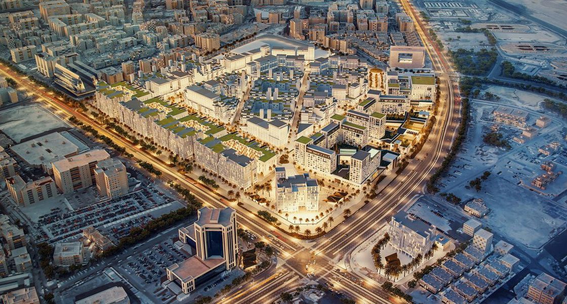 - Umm Ghuwaillina – The Green Urban Axis: on a GFA of 898,303 m2; it comprises a mixed use area including mall, retail units, offices, schools & kindergarten, speciality hospital, hotel, and serviced/non-serviced apartments. In addition, the complete neighbourhood overlooks Doha Metro’s Red Line and encompasses systems of blocks and streets, pedestrian walkways providing important connections, as well as air conditioned pedestrian bridges.