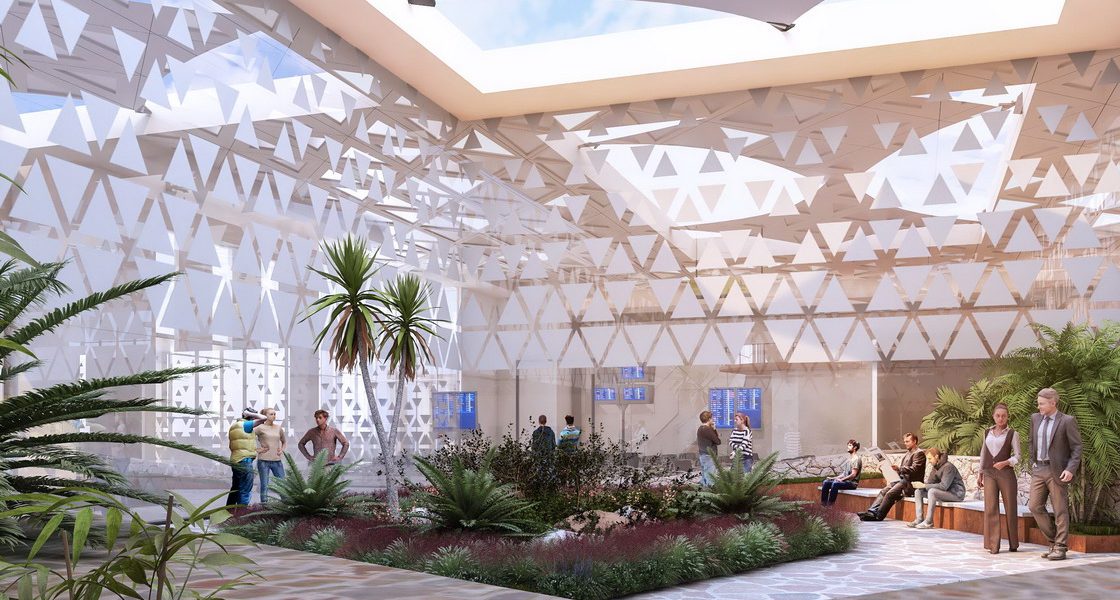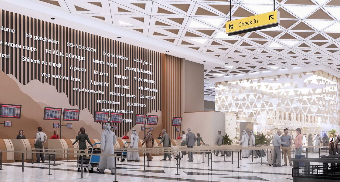 With a total built-up area of 28,184 m2; the project includes a terminal building (BUA: 13,425m2), rescue and fire station (BUA: 1,265 m2), control tower (BUA: 2,178 m2), maintenance building (BUA: 336 m2), warehouse (BUA: 500 m2), underground water tank (1,500 m3), meteorological station and meteorological hangar (BUA: 150 m2), garage (BUA: 375), mosque (BUA: 1,078 m2), staff accommodation building (BUA: 3,000 m2), aircraft debris building (BUA: 107 m2), tarmac security building (BUA: 134 m2), chilled water station (BUA: 600 m2), Airport ground lighting secondary building (BUA: 480 m2), airport ground lighting main building (BUA: 220 m2), permits building (BUA: 106 m2), water and wastewater treatment plant (BUA: 1,352 m2), 2 wells and well water treatment plant (BUA: 600 m2), weapon warehouse (BUA: 100 m2), soldiers maze (BUA: 335 m2), and accommodation building for port security soldiers (BUA: 660 m2).